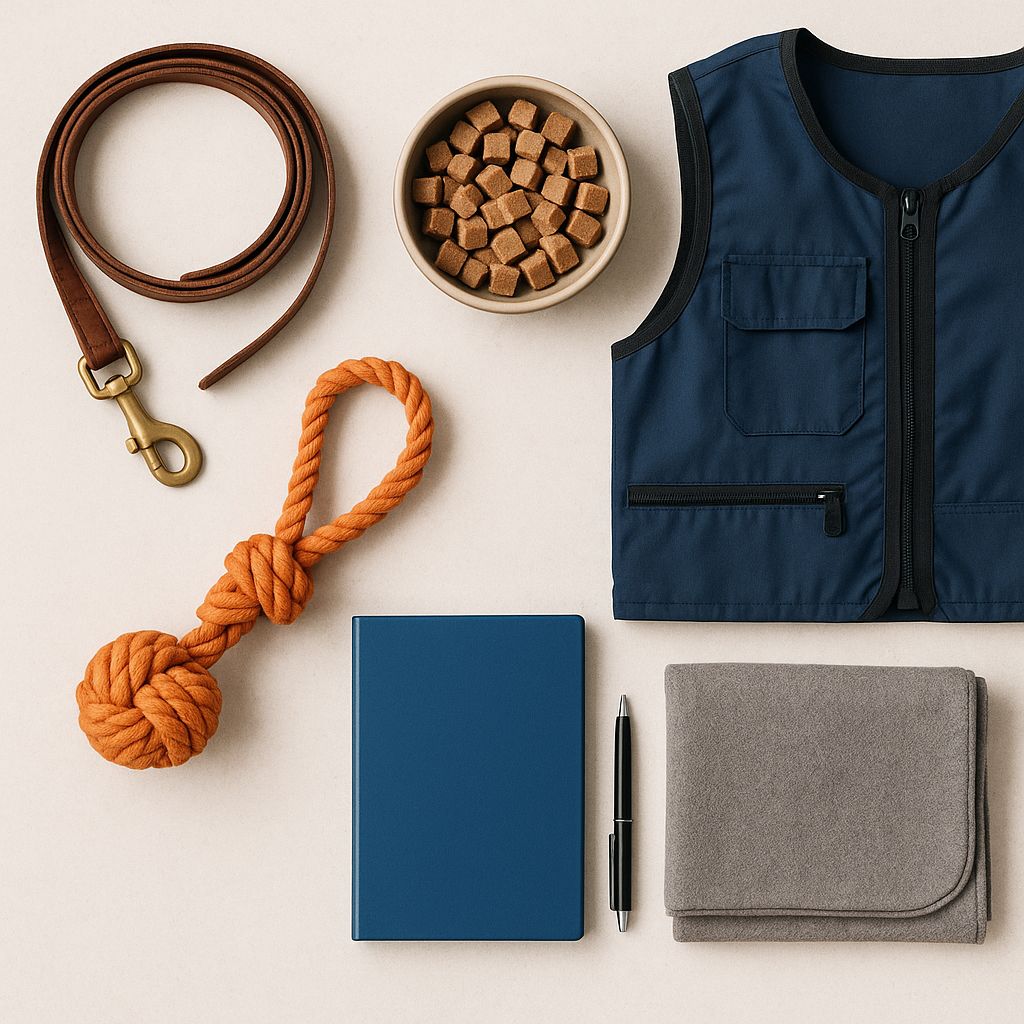• ulubioną zabawkę psa (jeśli lubi się bawić), kocyk/legowisko, na którym pies może odpocząć między wejściami,
